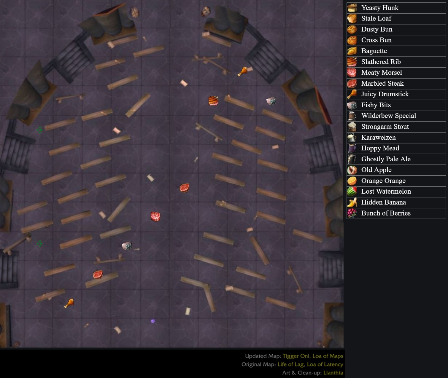 Il faudra ensuite ramasser différents aliments répartis dans le donjon pour pouvoir attirer Félicia. Ces derniers se trouvent sur ou autour des tables dans le