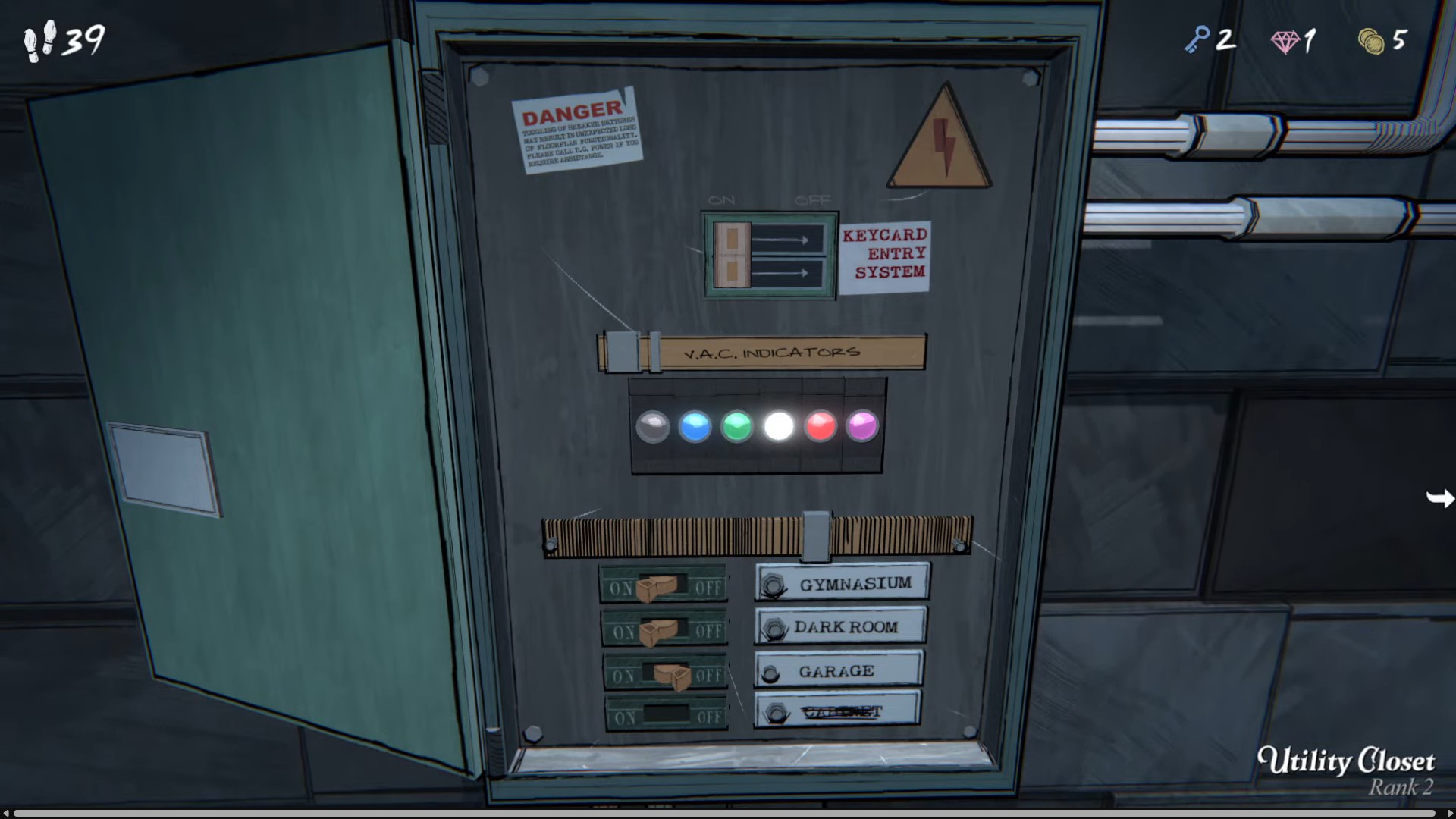 gratuitement. Pour y accéder, vous allez devoir résoudre l’énigme du boîtier à fusibles (ou Breaker Box) dans l’armoire de service (Utility Closet). L’énigme, comme vous vous en doutez, consiste à