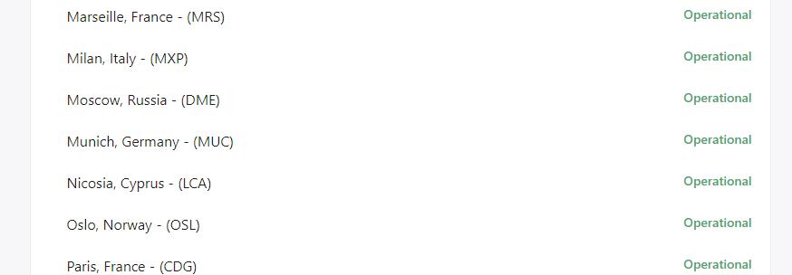 tous les pays dispose d’un serveur dédié du moins pour l’Europe. Par exemple, on retrouve l’état du serveur à Bruxelles pour la Belgique, à Paris, à