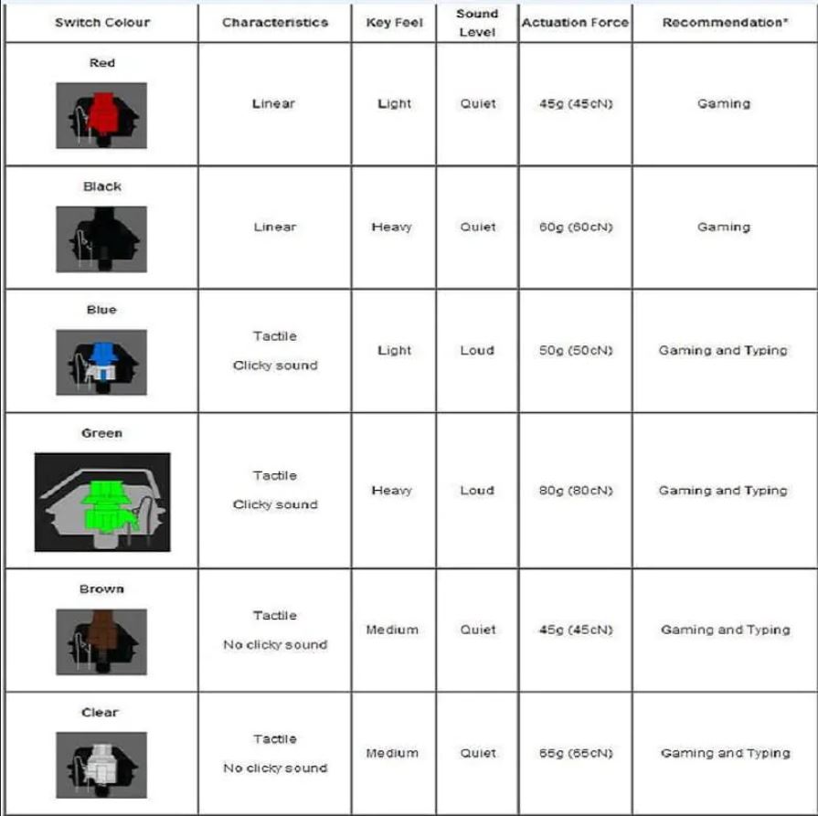 constructeurs comme Logitech ou Razer proposent leurs propres switches il est généralement recommandé de choisir un clavier avec des switches Cherry MX Red qui demandent peu de