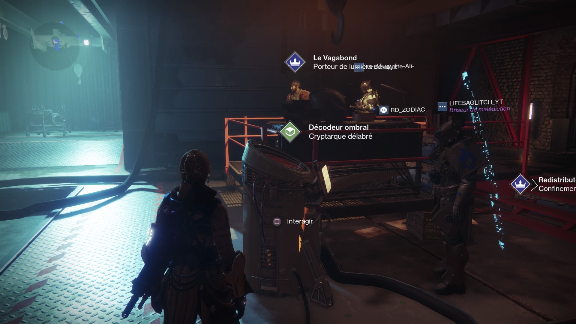 Rendez-vous à la Tour et allez auprès du Vagabond. À sa gauche en rentrant, vous trouverez une petite machine nommée « Décodeur ombral ». Cliquez ensuite sur la