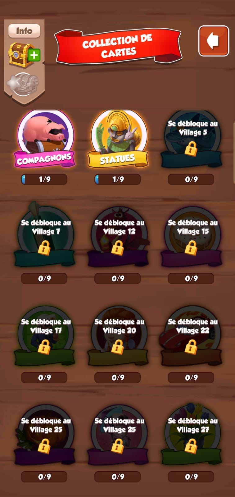 En allant dans le menu du jeu, vous pourrez accéder à votre collection de cartes. Chaque série se débloque à un certain village, et contient 9 cartes à collectionner. Ces cartes s’obtiennent dans des coffres, que vous pouvez trouver