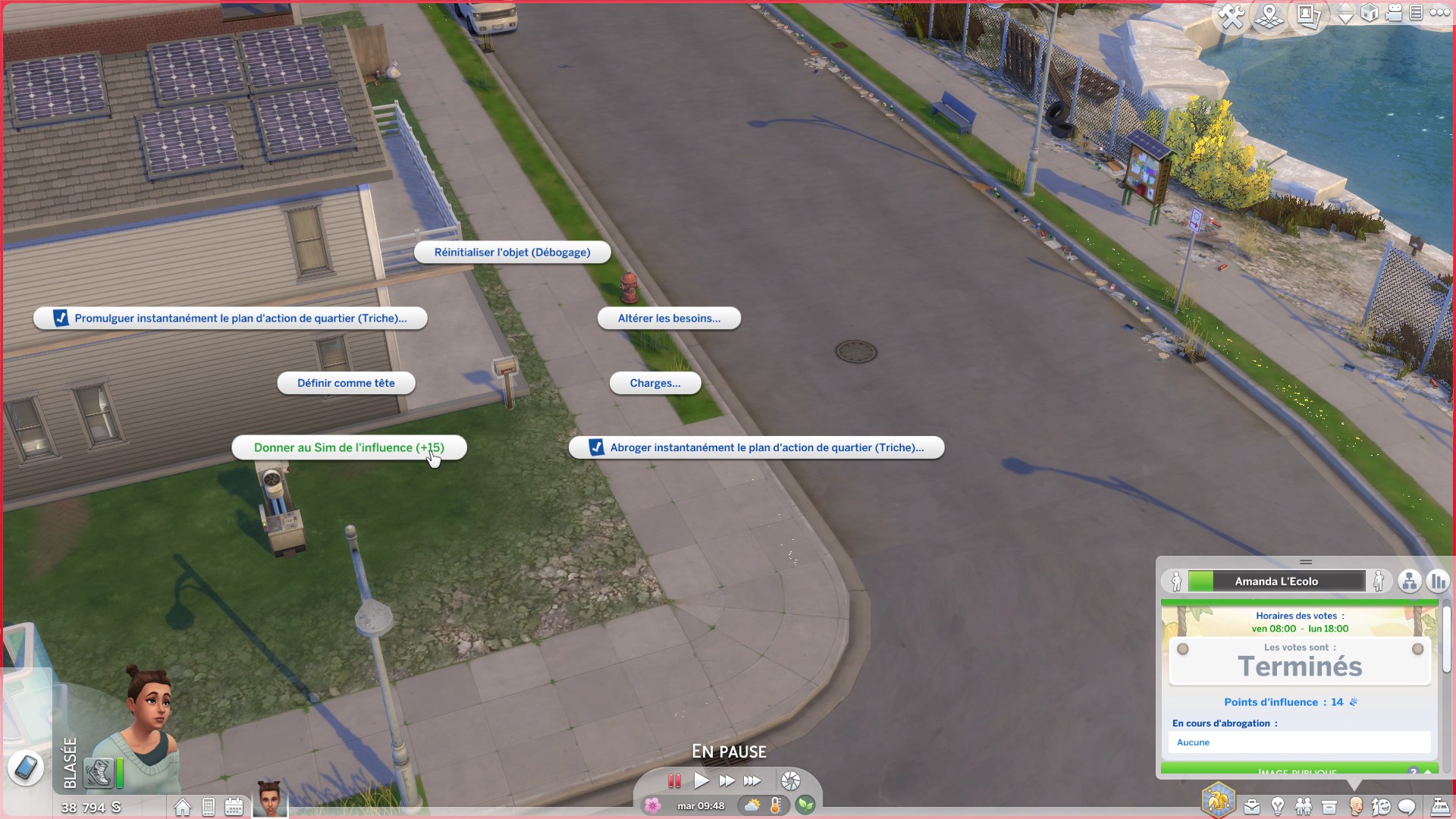 - Cliquer ensuite sur « Donner au Sim de l’influence (+15) ».
