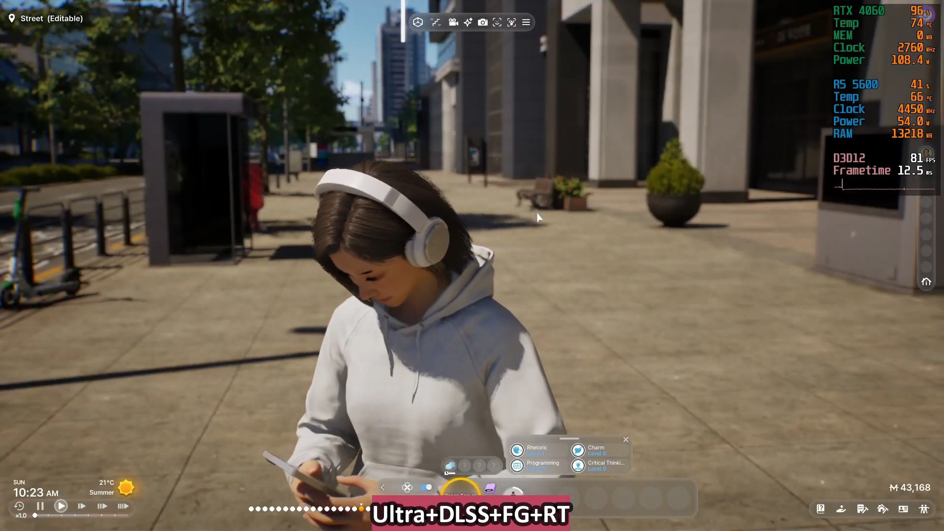 FPS moyens sont à 35. Toutefois, avec tous les éléments d’améliorations qui sont le DLSS, FG et RT, la moyenne augmente grandement puisqu’on est à
