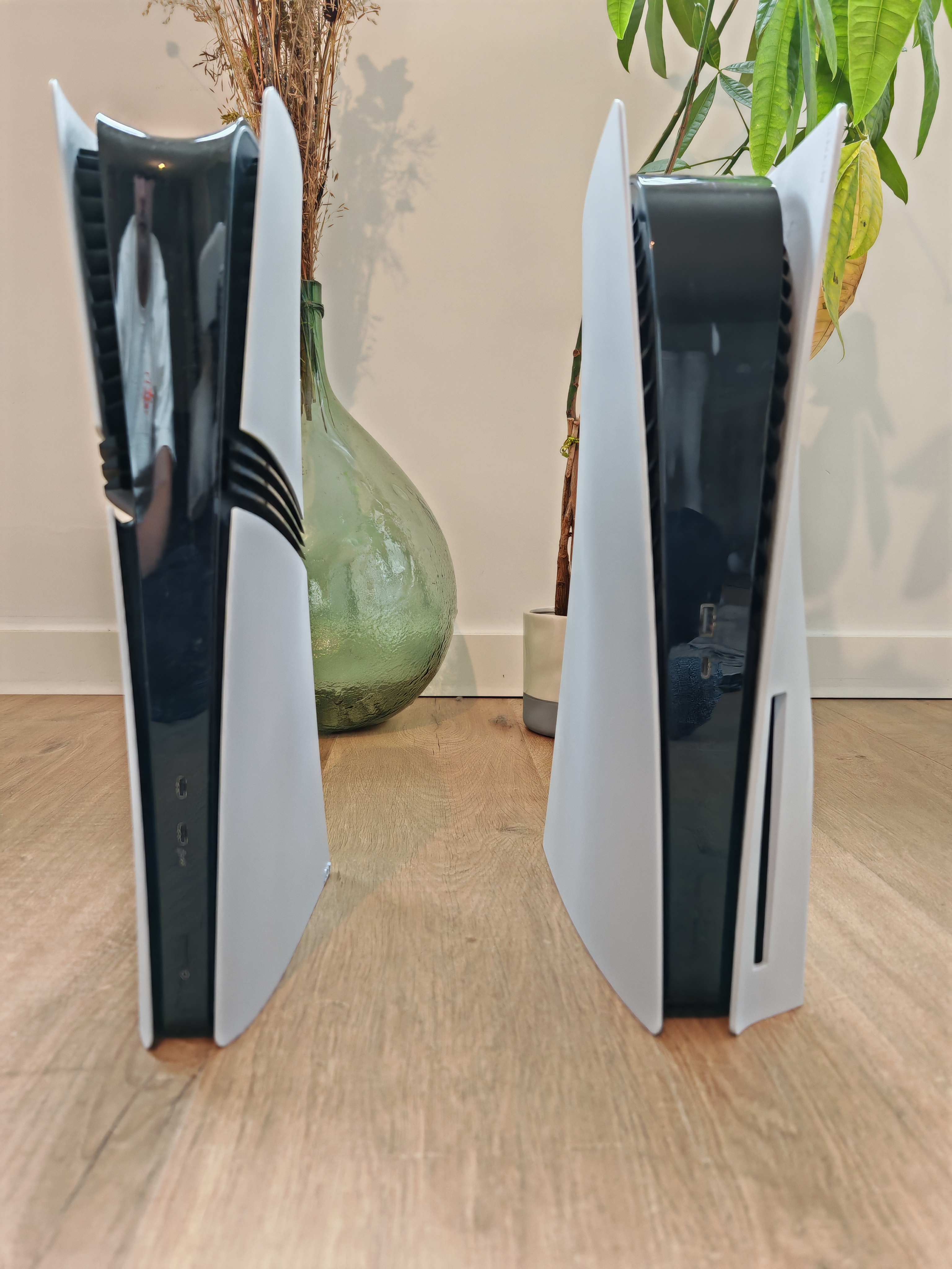 Visuellement, elle s’intègre mieux et fait un peu moins « monolithe » que la PS5 classique. Au-delà de ce premier aperçu, elle garde l’allure moderne et épurée de la gamme, mais propose un design