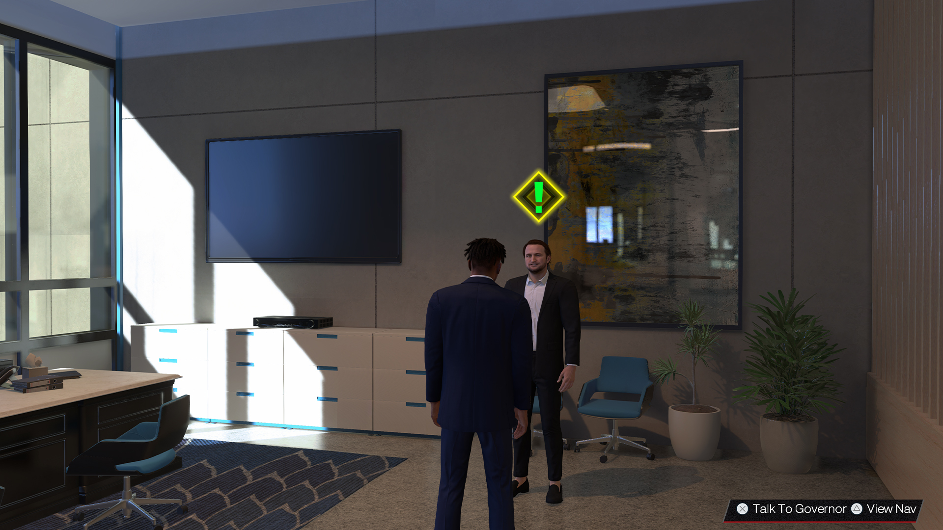 Dans le mode Mon GM, vous allez notamment pouvoir jouer en vue à la 3e personnes et déambuler dans les locaux de votre franchise NBA afin de discuter avec les joueurs, les