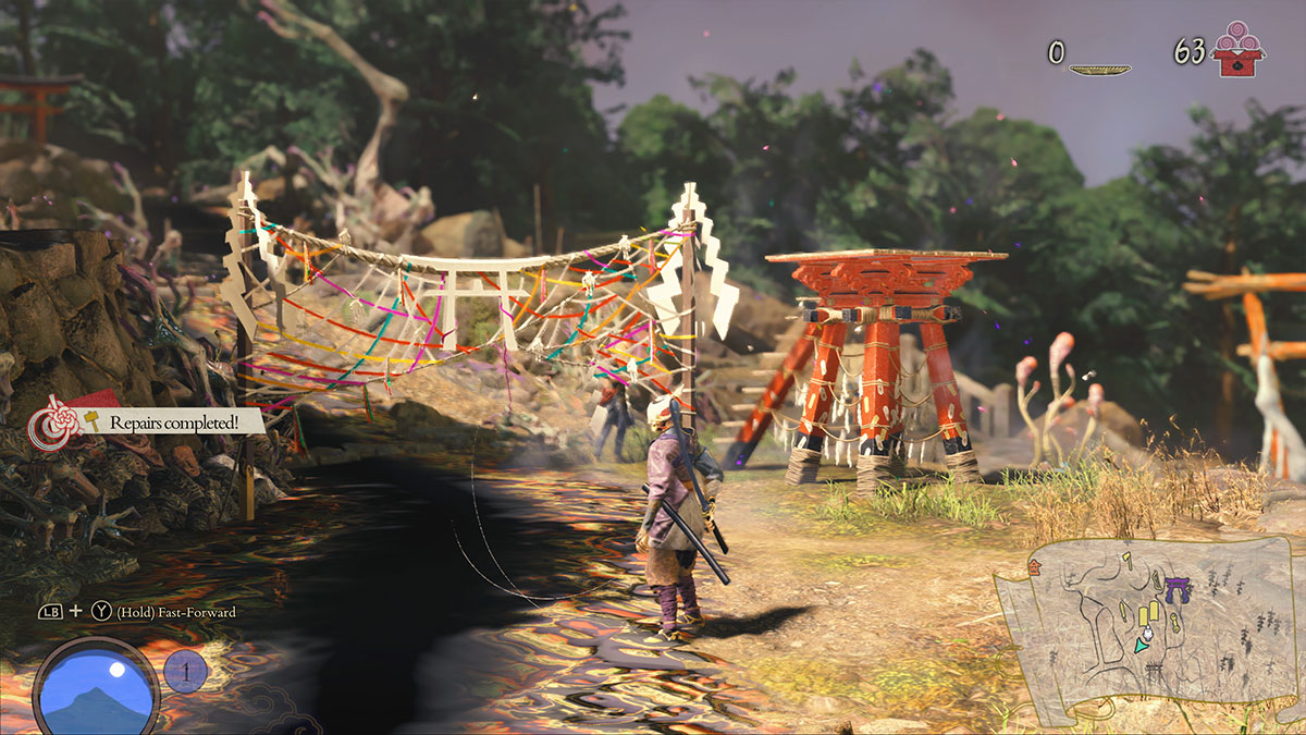 devez protéger, vous visitez différents villages sur le Mont Kafuku qui ont été profanés. L’objectif est de tracer un Chemin Spirituel à travers le village jusqu’à la Porte Torii