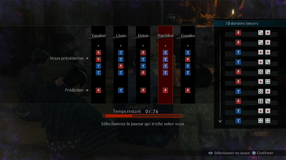 Enfin, on parlera d’une activité avec une salle de jeu de dé pour faire des parties de Cho-Han Bakuchi, un jeu de deux dés et de hasard ou vous devez miser sur pair (Cho) ou impair (Han). Une