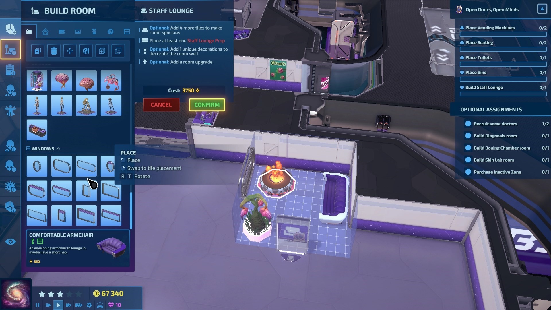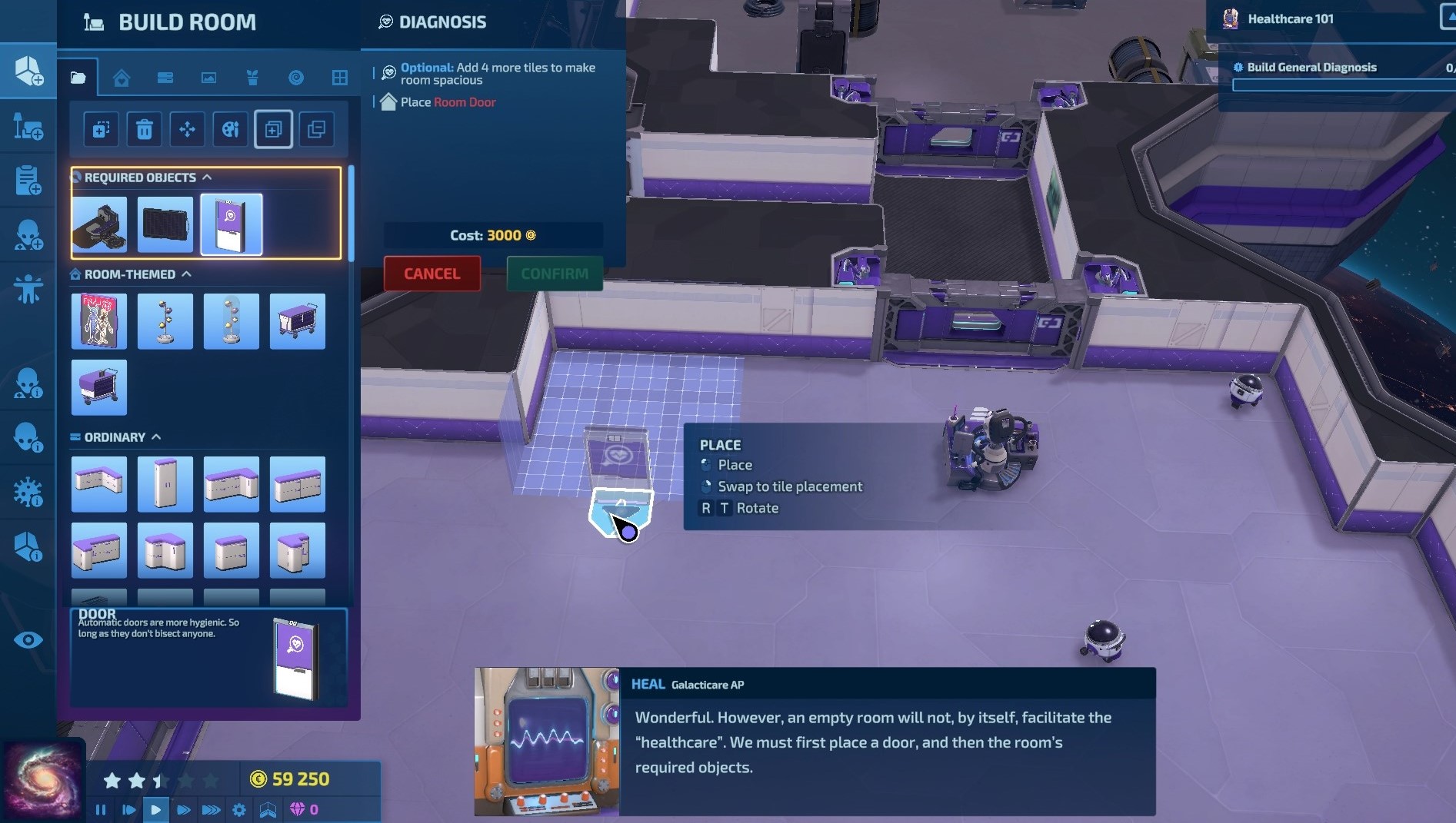 Comme toutes simulations d’hôpital, vous êtes lâchés avant l’ouverture de ce dernier, vous devrez alors créer les différents secteurs de votre établissement : accueil, salle de